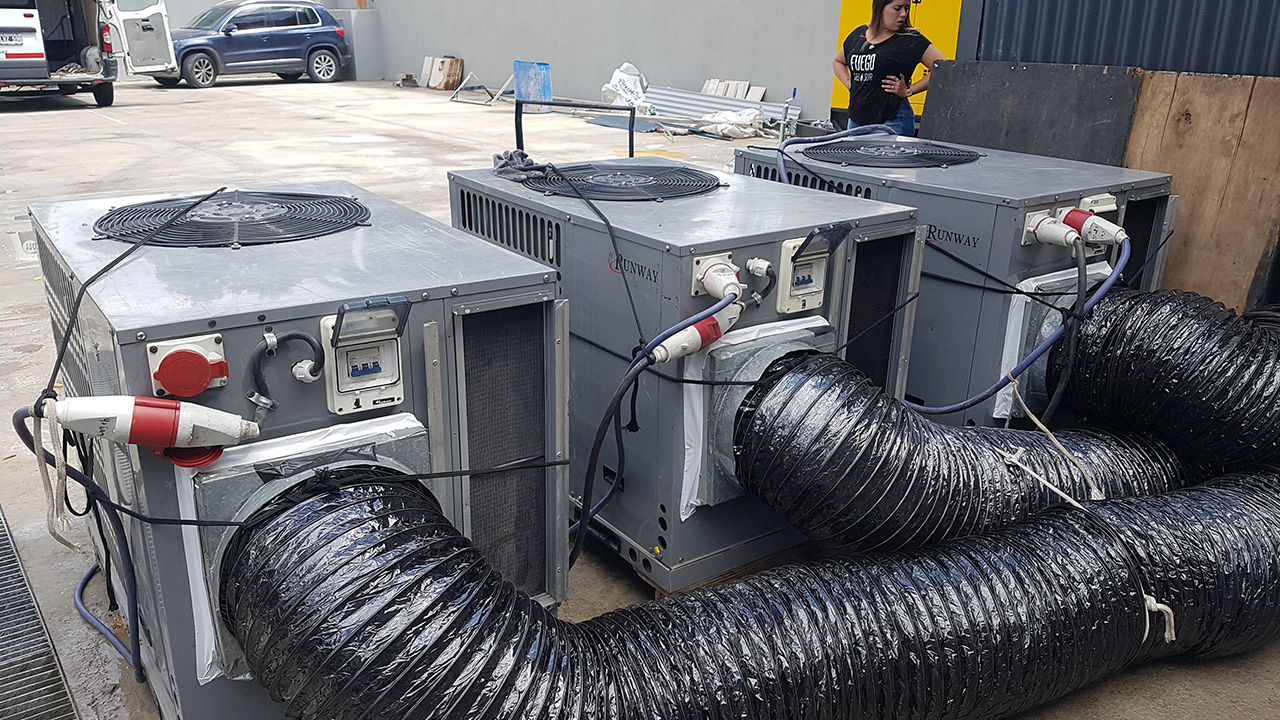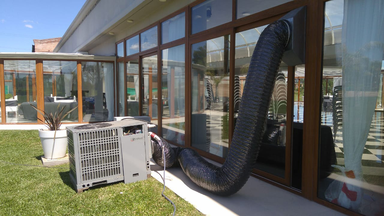- Aire Acondicionado Frío/Calor: equipos potentes para carpas cerradas o espacios interiores